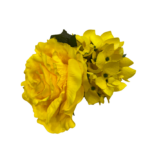 La flor de flamenca amarilla y blanca para el pelo es uno de los complementos más representativos de la moda flamenca y una pieza imprescindible para completar cualquier traje de flamenca. Este accesorio destaca por su elegancia, su estilo tradicional y su capacidad para aportar personalidad a cualquier look de feria o romería. El color blanco es una opción muy versátil, ya que combina fácilmente con trajes de flamenca de diferentes colores, estampados o diseños.