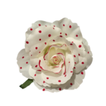 Si buscas un complemento clásico, elegante y fácil de combinar, esta flor de flamenca blanca con topos rojos es una elección perfecta. Su diseño tradicional y su versatilidad la convierten en un accesorio imprescindible para completar tu traje de flamenca y lucir un estilo auténtico en cualquier evento o celebración.