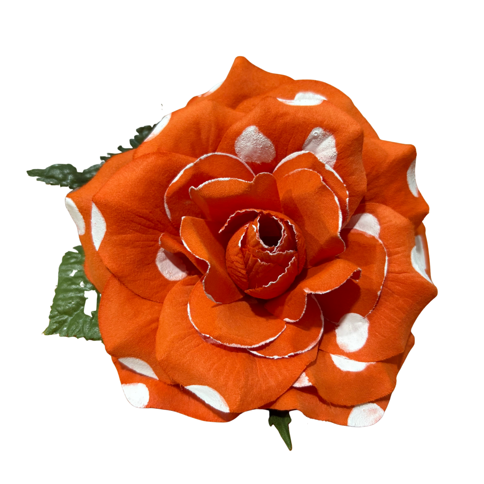 Esta flor de flamenca naranja con topos está pensada para aportar un toque sofisticado y armonioso al peinado. Su diseño voluminoso y delicado permite que destaque sin perder la esencia clásica del estilo flamenco. Gracias a su forma y a la disposición de sus pétalos, consigue dar movimiento y equilibrio al conjunto, convirtiéndose en un elemento clave dentro del look completo.